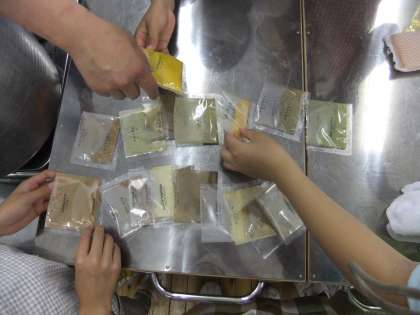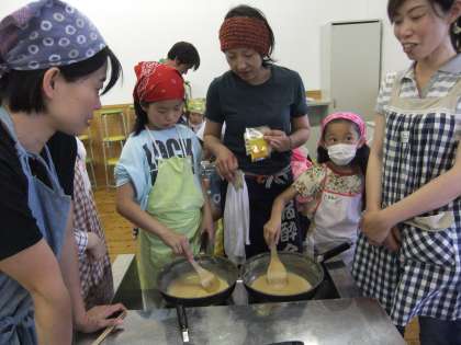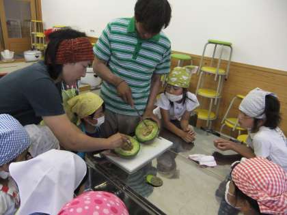 りんごとたまねぎをじっくり炒め、バターと小麦粉にいろんな香辛料を入れ・・・ほんとに本格的です!デザートのメロンも準備完了です。