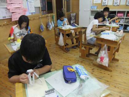美容師、大工、宇宙ロボット技師、サッカー選手、ショップ店員、保育士、医師、映画監督。1人1人将来の夢がふくらみます。今日は、その夢を実現している12年後のわたし・ぼくを紙粘土でつくりました。針金の芯材で体の動きを考え、決めてポーズに粘土を貼り付けていきます。体のどの部分が曲がるのか、どの部分が太いのか、ときどきアドバイスをしてもらいながら、作業が続きます。
