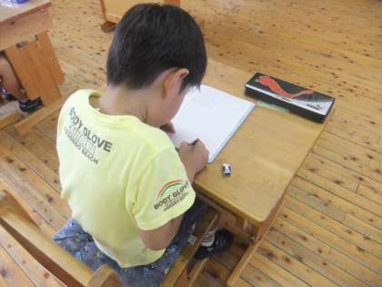 ノートに自分の考えを書いています。