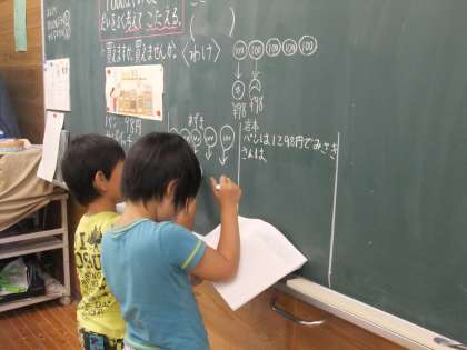 何人かが黒板に自分の考えをかいて