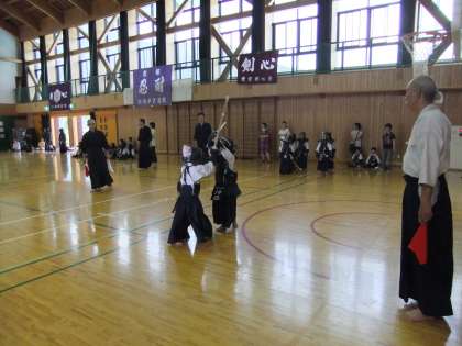 昨夜はゼミナールハウスでバーベキューと宿泊を楽しみ、今日も元気に体育館で練習しました。今年は、修学武道館、糺ノ森との合同合宿で、2日目は親善試合を行いました。元気なかけ声が二小の体育館に響いていました。