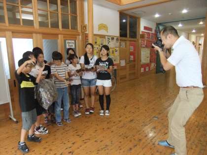 6年生が中心になって行っている東北への支援活動について、新聞社から取材を受けました。代表の児童がこれまでの取り組みの様子を話し、最後には先日集めたまつぼっくりや木の実などとともに6年生全員の写真をとってもらいました。代表の子は、教室で取材の様子を話し「めったにない経験ができてよかった。」と報告しました。