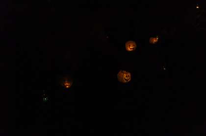 昨夜から玄関前でハロウィンのライトアップを始めました。いくつものちょうちんや,イルミネーション,そして魔女(かかし)も登場して,夜になると玄関前の植えこみの所が楽しいハロウィン会場になっています。ぜひ見に来てください。