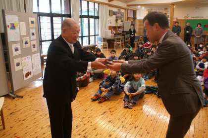 ぜひ子どもたちの前で,受賞された証書と勲章をお渡ししたいと思いました。