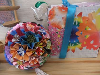 中を開けると,折り紙で作ったきれいな玉が出てきました。