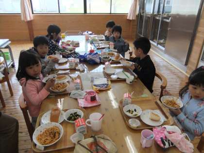 今日は1年生にとって初めての給食。手の洗い方、準備の仕方、当番の仕方、後片付けの仕方を学習しました。残すことのないように食べる前に減らしてもらった子もいましたが、みんなもりもり食べて時間内に食べきりました。当番をした子は、あとで「おもしろかった」「楽しかった」言っていました。