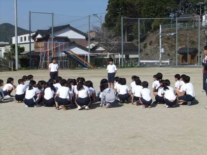 今年も月・水・金曜日には全校遊びや色別遊びがあります。4,5,6年生がそれぞれ担当して運営しています。1年生も、大勢で遊ぶ体験ができ、楽しんでいます。