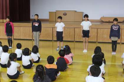 今日の朝会は,前期委員会の紹介でした。それぞれの委員会から活動内容や目標などが伝えられました。その後,校長先生から,スクールカウンセラーの吉川先生の紹介がありました。今後,子どもたちの相談にのっていただきます。最後に,読書の取組についてのお話がありました。昨年度,ほぼ全員が100冊読書できたので,今年度もそれ以上に,良い本をたくさん読んでほしいと思います。