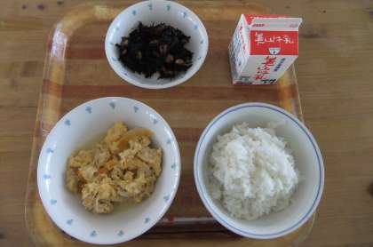 今日の給食は、胚芽米ごはん・牛乳・あげたま煮・ひじき豆でした。胚芽米ごはんは、つやつやしていて、もっちりとした食感でとてもおいしかったです。あげたま煮は、卵がふんわりしてとてもやさしい味でした。ごはんによく合っていておいしかったです。