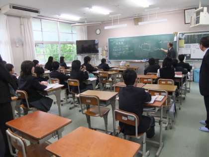 卒業した中学1年生の授業の様子を参観しました。クラスを2つに分けて、英語学習と数学学習の少人数学習でした。二小の卒業生たちも熱心にノートを書いたり単語を覚えたりとがんばっていました。