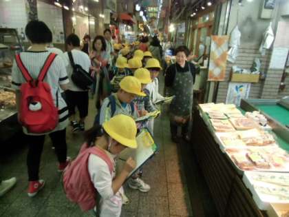 6日に京都市内へ社会見学にいってきました。京都市役所からスタートして、寺町通り、錦市場、四条通り、京都駅、そして京都タワーへと、それぞれ自分たちが考えためあてをもって見学にのぞみました。