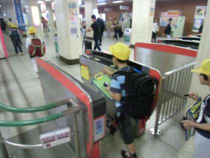 地下鉄では、自分で切符を買って電車に乗る体験をしました。切符を改札機にいれることも、子どもたちにとっては、とても新鮮なことで、一つ一つに一喜一憂していました。