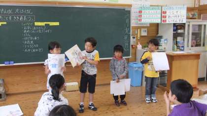 町探検で分かったことを、発表し合いました。