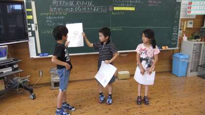 それぞれの施設のお仕事の内容や、働いておられる方について、しっかり学んできた様子が伝わってきました。自分のかいた絵や文で説明した後、互いに感想や質問をし合いました。