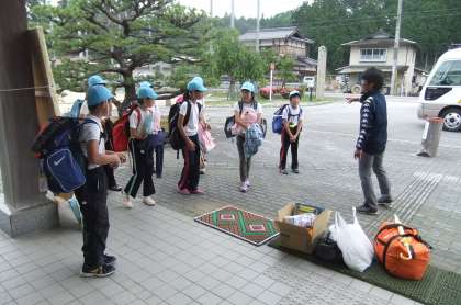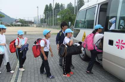 今日から長期宿泊学習が始まります。朝マラソンの後,午前9時,元気よく学校を出発しました。いってらっしゃい!