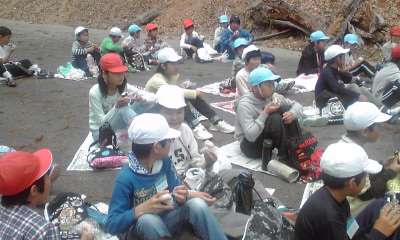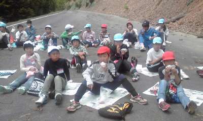 昼食 家から持ってきたおにぎりです。昼からの活動に向けエネルギー充電です。