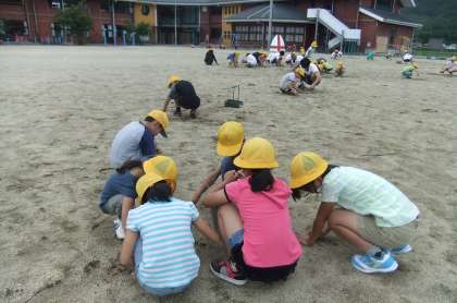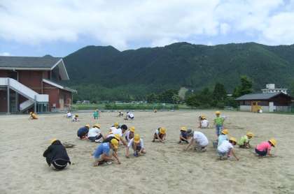 今日は全校で草引きをしました。運動場の雑草をみんなで一生懸命取り除きました。抜いても抜いても生えてくる雑草。どこからか種が飛んできているのでしょうね・・・。