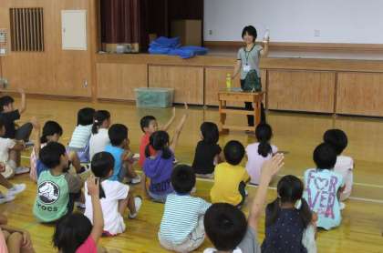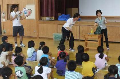 今日の朝会は栄養教諭の高橋先生のお話でした。市販のジュースにどれだけ砂糖が入っているかを知り,飲み過ぎに注意するように,ということを教職員劇を交えて伝えられました。予想以上にたくさんの砂糖が入っていることを知って,みんな驚いていました。