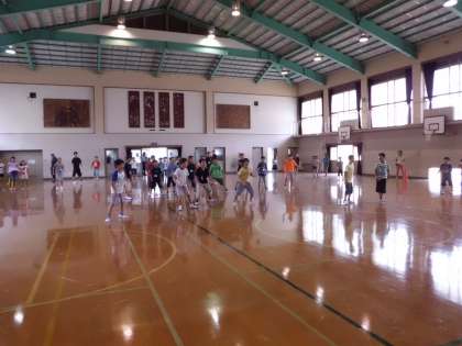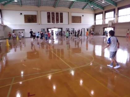 たくさんの人数で,ボールも2つで戸惑いながらも,