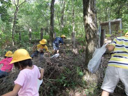 昨日生活科で秋の様子について話し合った後「どんぐりなどを見つけたら教えてね。」と言うと、早速拾ってきた子がいました。もう落ちているのなら、早めに探しにいかなければいけません。なぜなら落ちたどんぐりはシカやイノシシの大好物だからです。「シカたちより先に見つけに行こう!」と時間割を変えて午後から森林公園にどんぐり拾いに行きました。何が作れるかな?と考えながら森のめぐみがたくさん集まりました。
