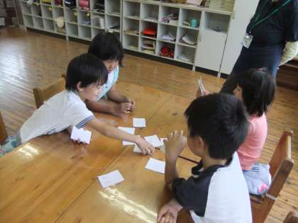 漢字の成り立ちを学習し、その後成り立ちを読み札に、漢字のもとになった絵のようなものを絵札にして、カルタを作りました。今日はそのカルタをみんなで楽しみました。これで、上巻の国語の教科書の学習はすべて終わりました。明日からは、下巻の教科書を間違えずに持ってきましょうね。