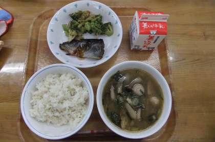 今日の献立は,麦ごはん・牛乳・にしんの煮つけ・ブロッコリーのおかか煮・いものこ汁でした。にしんは,脂がのっていて身もやわらかくて,子どもたちは皆骨ごとよくかんで食べられました。ブロッコリーのおかか煮は,昆布だしでブロッコリーを煮ていただいたので,昆布とかつおの風味がとてもよくておいしかったです。いものこ汁には,地元の新鮮でとても元気な青ねぎを入れていただいて,彩りや香りもよく,おいしかったです。
