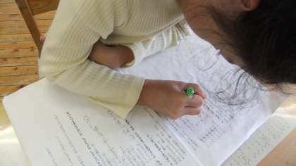 それを生かして、学習発表会の劇で言う自分のせりふも、どんな風に言ったらいいか、一人ひとりが考えて、台本に書き込んでいます。