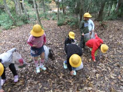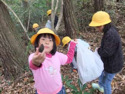 育てたアサガオのつるを使ってリースを作ります。今日は、森林公園にリースの材料になる「きつねのしっぽ」や「まつぼっくり」などを集めに行きました。坂や小枝もへっちゃらにどんどん林の中に入って、たくさんリースの材料を集めることができました。近くにこんなステキな森林があってすぐに行けるなんて、二小は恵まれた場所にありますね。