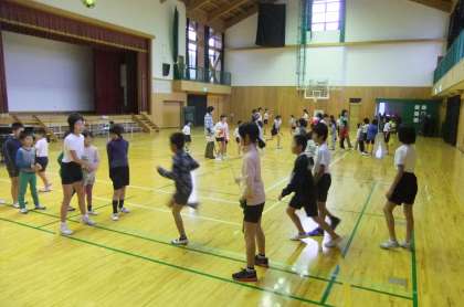 今日は朝から雨。体育館で大縄をしました。4年生は社会見学で留守でしたが,他の学年のみんなでがんばって跳びました。少しずつ上達してきています。