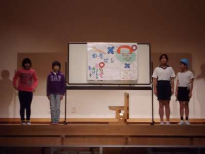 4年生「地球をすくうのはわたしたち」の劇を見に行きました。