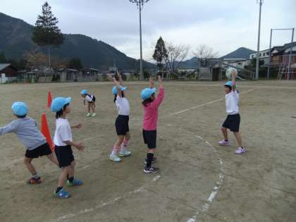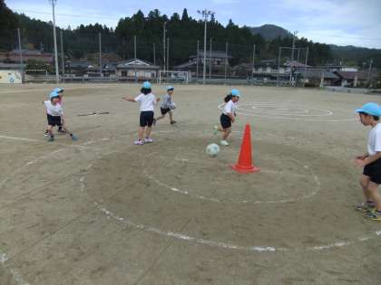 雨で流れた体育ですが、今日は2年生がお出かけでいないので、1年生だけでシュートゲームをしました。コーンを倒すべく攻めます。相手チームは倒されないように防ぎます。ボールが2つあるので、あっちもこっちも守らなければいけません。ボールが当たっても誰も泣くことなく一生懸命がんばりました。