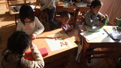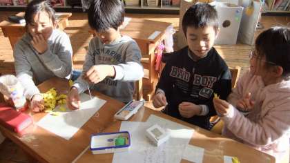 話し合いでみんなで千羽鶴を折ることになりました。おうちの方に手伝ってもらったり友達に手伝ってもらったりしながら、素敵な千羽鶴が出来上がりました。