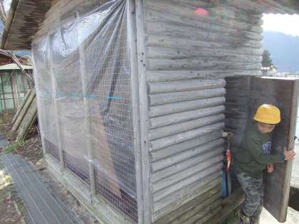 寒くなり、うさぎ小屋にも冬がやってきました。かわいいうさぎたちがかぜをひかないように、小屋のまわりをビニールでおおいました。学習発表会のときによびかけたら、えさもたくさん持たせていただけるようになり、助かっています。