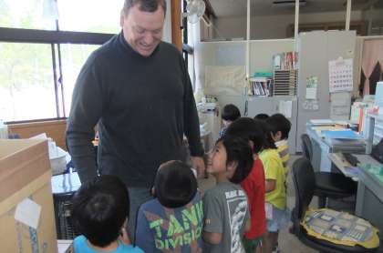今日は英語のALTの先生になかよしだいさくせんをしました。「どんな英語を知ってる?」とのお尋ねに「see you」「hello」など、答えていました。
