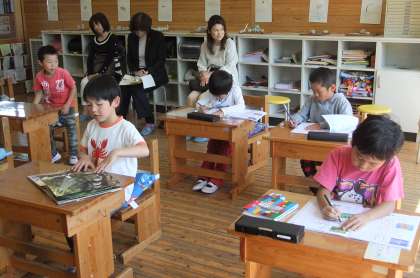 卒園した子どもたちの様子を見に、保育所の先生方が1年生教室に来てくださいました。いつも通り一生懸命学習して「がんばっていますね。」とほめていただきました。