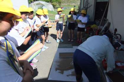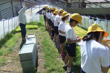 今日、地域の方に、種まきの見学をしました。先日は水に浸しておいた籾を、学級園の横に置いたバケツに植えました。今日は、明日学校横の田に植える苗が、どの様にして育てられているのかを見せていただきました。みんな一生懸命お話を聞き、メモを取り、まとめていました。