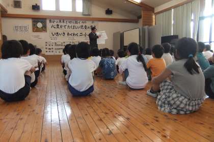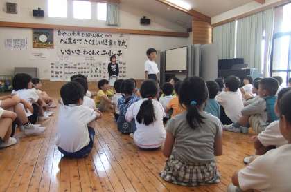 今日の朝会は校長先生の「こよみ」についてのお話でした。カレンダーにはいろいろなことが書かれているということを初めて知っておどろいていた子どもたちです。今までは他の学年が感想や意見を言うのを聞いていた1年生も、今日は自分の意見を言うことができました。