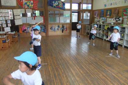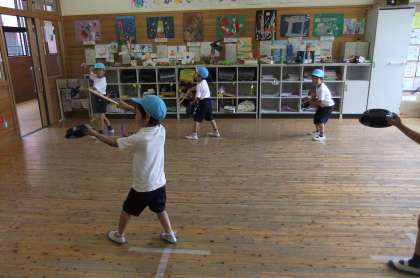 運動会に向けて低学年はエイサーの練習を始めています。1年生も、最後まで学習して通し練習ができるようになりましたが、まだまだ、上手には踊れていません。これからも特訓を続けます。