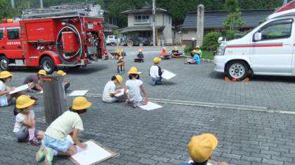 今年も消防署から消防車と救急車が学校に来てくれて、写生会が開かれました。毎年同じ絵をかくことで子どもたちの毎年の成長が分かります。今年はどんな風にかこうかと子どもたちも工夫を凝らします。よい取り組みだと思います。