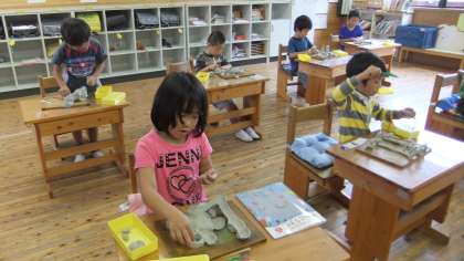 懇談会の時間、1年生はかしこく粘土遊びをしていました。いつも子どもたちには「お友達とおしゃべりするのではなく、粘土とお話しながら作品を作りましょう。」と言います。子どもたちはきっと「あなたは何になりたいの?」「あなたはすべり台になりたいんだね。」などと心の中で粘土とお話しながら作ったのでしょうね。どこ子も思い思いに楽しい作品を作ることができました。教室に戻ると、し〜んと静まりかえった中で楽しそうに粘土を作っている1年生の姿がありました。