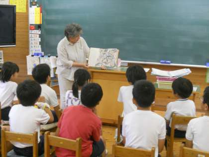 7月15日は3年生,16日は4年生と5年生に,京北お話しの会の方が読み語りをしてくださいました。3年生の本のタイトルは「勇気」4年生は「かじかのびょうぶ」「にちよういち」5年生は「かきねのむこうはアフリカ」です。どの学年の子も,本の世界に入り込んで,聞いていました。