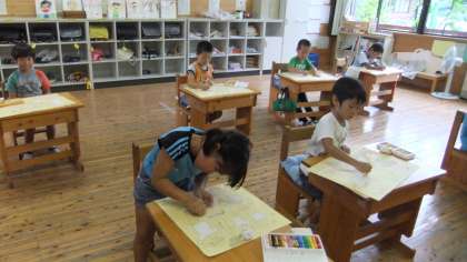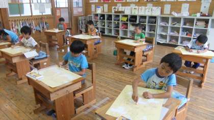 運動会に向けての1年生の仕事はポスターをかくことです。各バス停や公民館に貼りだして地域の方に運動会のお知らせをします。みんなに見てもらえるように心をこめて丁寧に色をつけ、完成しました。