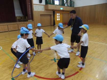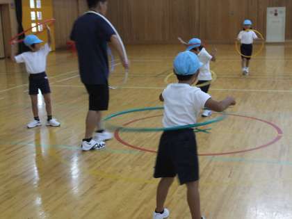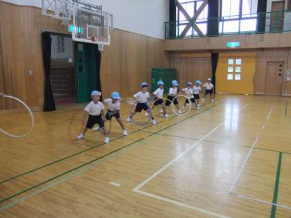 「輪を使って何ができるかな?」いろいろ考えて楽しく遊びました。