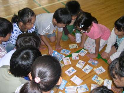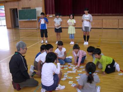 保健給食委員会の発表は「健康かるた大会」でした。