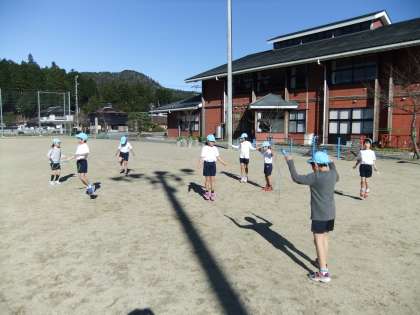 寒い中子どもたちは元気いっぱい!!運動場を楽しく走りました。