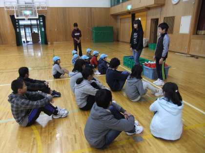 今まで他の学校に借りていた玉入れの「青玉」を、6年生が卒業制作として150個以上作ってくれました。きょうは、1年生を誘ってうまく玉入れができるかどうかお試しをしました。1年生は、運動会以外で玉入れを楽しむことができ、大喜びでした。