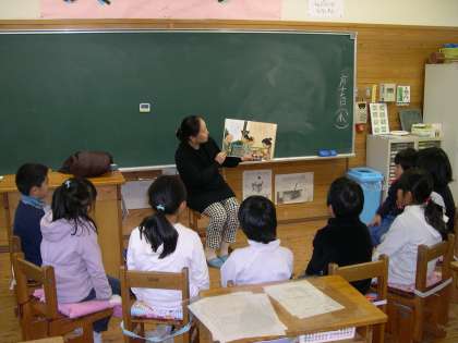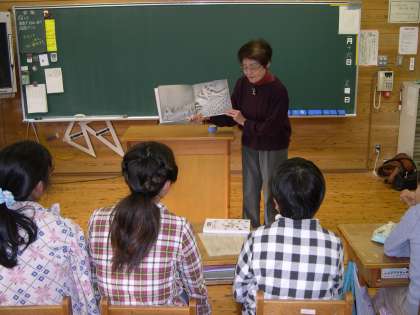 今日は2年生と5年生が読み語りの日でした。2年生は永富さんに「じゅげむ」と「いしぶみ」を,読んでいただきました。「じゅげむ」は声に出してみんなで楽しみながら聞きました。5年生は米津さんに「八方にらみねこ」を読んでいただきました。かいこを守ろうとしたみけがねずみたちにやられ,荒業で強くなっていく様子を楽しみながら聞けました。