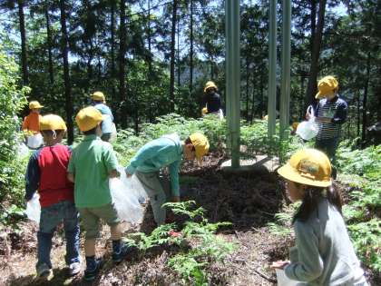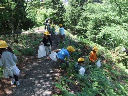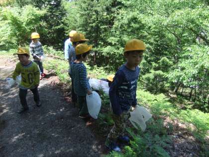 1,2年生いっしょにわらびとりに行きました。いいお天気の中、森林公園やこんぴらさんなど、わらびを探して歩きました。