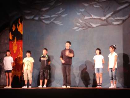 続いて劇団の方による「鬼の小槌」。劇の後半から子役としSさんが登場。女優になりきって演技をしまた。