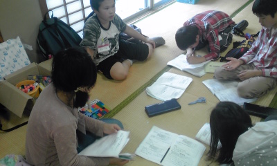 グループで車座になって話し合っています。次は全体の前で発表します。